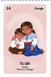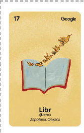 Memory Memorama de Lenguas MexicanasVersión en línea Descubre y aprende sobre las diversas lenguas indígenas de México en este divertido juego de memoria. por Ileana Lara ST'AKU (ESTRELLA)- TEPEHUA, HIDALGO LIXTOCON (AGUA)- TOTONACA, VERACRUZ MUCHÁ (LUNA)- TARAHUMARA, CHIHUAHUA ZA' (ELOTE)- ZAPOTECO, OAXACA NTHO (TRUENO)- OTOMÍ, HIDALGO HA'AL (LLUVIA)- TZELTAL, CHIAPAS GUNAA (MUJER)- ZAPOTECO, OAXACA XANTI (FLOR)- TEPEHUA, HIDALGO TS'ALH (HIJO)- TEPEHUA, HIDALGO ROHUÍ (CONEJO)- TARAHUMARA, CHIHUAHUA CHUKWA' (CHOCOLATE)- MAYA, YUCATÁN MUCHÁ (LUNA)- TARAHUMARA, CHIHUAHUA ICHICH (CORAZÓN)- HUASTECO, SAN LUIS POTOSÍ LIBR (LIBRO)- ZAPOTECO, OAXACA TS'ALH (HIJO)- TEPEHUA, HIDALGO XANTI (FLOR)- TEPEHUA, HIDALGO ROHUÍ (CONEJO)- TARAHUMARA, CHIHUAHUA ZA' (ELOTE)- ZAPOTECO, OAXACA NTHO (TRUENO)- OTOMÍ, HIDALGO LHCÚYAT (FUEGO)- TOTONACO, VERACRUZ AVILHCHAN (SOL)- TEPEHUA, HIDALGO TÁXCAL (TORTILLA)- NÁHUATL, VERACRUZ INIC (HOMBRE)- HUASTECO, SAN LUIS POTOSÍ TÁXCAL (TORTILLA)- NÁHUATL, VERACRUZ AVILHCHAN (SOL)- TEPEHUA, HIDALGO CHUKWA' (CHOCOLATE)- MAYA, YUCATÁN LIBR (LIBRO)- ZAPOTECO, OAXACA ST'AKU (ESTRELLA)- TEPEHUA, HIDALGO LIXTOCON (AGUA)- TOTONACA, VERACRUZ LHCÚYAT (FUEGO)- TOTONACO, VERACRUZ IYÉ/HUIYÉ (MADRE)- TARAHUMARA, CHIHUAHUA HA'AL (LLUVIA)- TZELTAL, CHIAPAS IYÉ/HUIYÉ (MADRE)- TARAHUMARA, CHIHUAHUA GUNAA (MUJER)- ZAPOTECO, OAXACA ICHICH (CORAZÓN)- HUASTECO, SAN LUIS POTOSÍ INIC (HOMBRE)- HUASTECO, SAN LUIS POTOSÍ