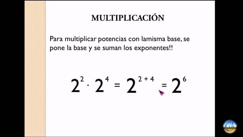 Examen de potenciasVersión en línea breve test referente a la solución de ejercicios con potencias por Miguel Gomez 1 2^2*2^6 Respuesta escrita 2 3^8/3^4 Respuesta escrita 3 (2^5)^6 Respuesta escrita 4 7^0 y 5^0 Respuesta escrita 5 5^6*5^3 Respuesta escrita Explicación 1 Recuerda sumar exponentes 2 Recuerda restar los exponentes 4 potencia de 0 5 sumar exponentes