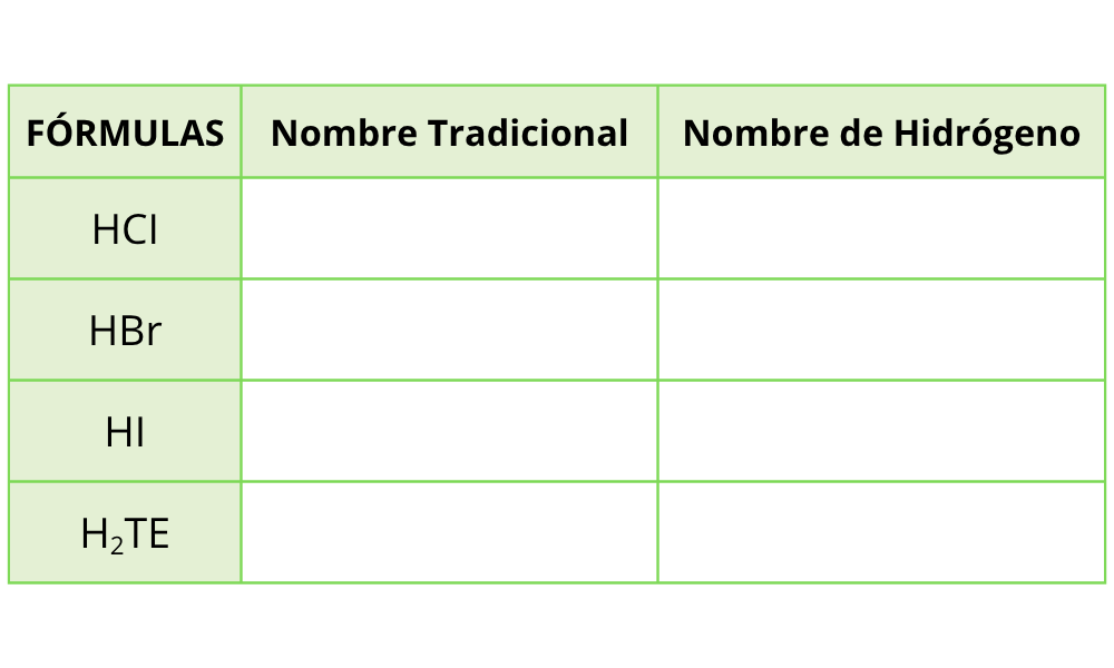 20 Los compuestos binarios de hidrógeno y oxígenoVersión en línea Completa el cuadro a partir del nombre de los compuestos hidrácidos por Talleres Metafisca 1 2 3 4 5 6 7 8 1 2 3 4 5 6 7 8