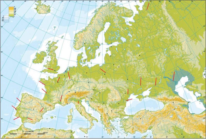Mapa Europa Físico 3º ESO (63 items)Versión en línea Mapa Europa Físico interactivo para 3º ESO por Vicky 1 Islandia 2 Irlanda 3 Gran Bretaña 4 Océano Glacial Ártico 5 Océano Atlántico 6 Mar Báltico 7 Mar del Norte 8 Mar Cantábrico 9 Mar Mediterráneo 10 Mar Jónico 11 Mar Adriático 12 Mar Egeo 13 Mar Negro 14 Gran Llanura Europea 15 Montes Escandinavos 16 Montes Urales 17 Pirineos 18 Alpes 19 Apeninos 20 Balcanes 21 Montes Cárpatos 22 Cáucaso 23 Península Escandinava 24 Península Ibérica 25 Península Itálica 26 Península Balcánica 27 Golfo de Botnia 28 Golfo de Vizcaya 29 Golfo de Cádiz 30 Golfo de Génova 31 Canal de la Mancha 32 Estrecho de Gibraltar 33 Estrecho del Bósforo 34 Estrecho de Dardanelos 35 Islas Baleares 36 Córcega 37 Cerdeña 38 Sicilia 39 Chipre 40 Lago Lagoda 41 Lago Caspio 42 Río Pechora 43 Río Volga 44 Río Don 45 Río Dniéper 46 Río Dniéster 47 Río Danubio 48 Río Vístula 49 Río Rhin 50 Río Támesis 51 Río Sena 52 Río Loira 53 Río Garona 54 Río Ródano 55 Río Po 56 Río Ebro 57 Río Tajo 58 Río Duero 59 Río Guadiana 60 Río Guadalquivir 61 Cabo De Finisterre 62 Cabo Norte 63 Cabo San Vicente