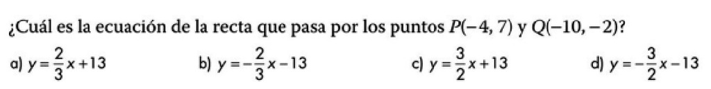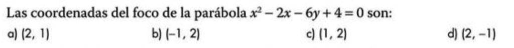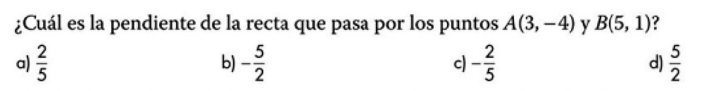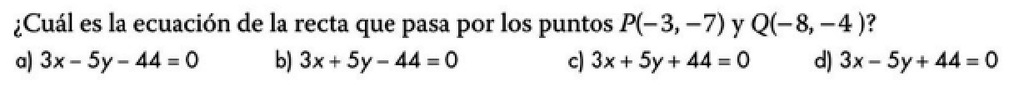 Simulador Examen de Admisión UAM (Curso Biaani' Guizii')Versión en línea Prepárate con el simulador de Biaani' Guizii' por Cursos Preuniversitarios Biaani' Guizii' 1 Selecciona la respuesta correcta a (3,6) b (6,3) c (13,2) d (2,3) 2 Selecciona la respuesta correcta a 40 b 50 c 60 d 70 3 Selecciona la respuesta correcta a 0.1 b 0.2 c 0.3 d 0.4 4 Selecciona la respuesta correcta a (5.5,6) b (0.5,2) c (6,2) d (5.5,2) 5 Selecciona la respuesta correcta a a) b b) c c) d d) 6 ¿Cuál es el valor de w que satisface la ecuación? a 27 b 6 c 3 d 9 7 ¿Cuál es el sinónimo? a b c d 8 ¿Qué sigue en la secuencia? a b c d 9 ¿Qué sigue en la secuencia? a b c d 10 Identifica el sinónimo a b c d 11 ¿Al ordenar da como resultado un? a b c d 12 Encuentra la relación entre esta palabra y una de las opciones a b c d 13 ¿Cuanto tiempo tiene que esperar Roberto para el siguiente tren? a b c d 14 Elige el bloque apropiado para completar el patrón: a b c d 15 ¿Cual es el área de esta figura? (Todas las respuestas estan en cm^2) a b c d 16 Hay 10 lados visibles en esta figura. ¿Que porcentaje de los lados visibles es azul? a b c d 17 ¿Cuál de estos cubos resulta de esta figura? a b c d 18 ¿Qué forma resultara al unir estas dos figuras? a b c d 19 ¿Qué número completa la igualdad? a b c d 20 ¿Sí, SANDIA=AIDNAS, entonces que número completa la igualdad? a b c d 21 ¿Qué letra completa la secuencia? a b c d 22 ¿Cuál número completa la secuencia? a b c d 23 Mira el primero ejemplo para ver en qué se convierte la forma cuando se dobla. A continuación, aplica la misma lógica con la forma inferior. a b c d 24 ¿Cuál es la imagen de la figura que se muestra? a b c d 25 Al cortar el papel de la siguiente manera, ¿Cómo se verá el resultado? a b c d 26 ¿Cuál de estas opciones es la vista superior de la figura? a b c d 27 ¿Cuál figura completa la secuencia? a b c d 28 El resultado del binomio al cubo es: a b c d 29 ¿Cuál de las siguientes es una cita textual? a Hola b Adiós c Viva la loquera d Vivir sola es como estar en una fiesta donde nadie te hace caso (Marilyn Monroe) 30 La conlusion del texto es: a Uno de los contrincantes está mejor alimentado b El campesino debió respetar más al maestro c El maestro resultó más débil que el campesino d El hombre saca lo mejor de sí frente a la adversidad 31 ¿Cuál es el valor del tercer quartil? a 19 b 20 c 24 d 25 32 ¿Cuál es el valor de x? a 2 b -2 c 14 d -14 33 Dominio de la función a b c d 34 ¿Qué tipo de grafico es? a Polígono de frecuencia b histograma c grafico de barras d gráfico circular 35 ¿Qué lugar ocupa México en extensión territorial a nivel mundial? a 3 b 16 c 13 d 4 36 Las siguientes frases son un ejemplo de lenguaje figurativo, excepto a Sus retoños crecieron bajo una tutela cuidadosa y esmerada educación b La maldad se ocultaba en su forma más pura bajo esos olocuentes ojos rasgados. c No tenia mas opción que creer en el testimonio de los presentes. d Estás presente, como las tardes de primavera en los recuerdos del otoño. 37 ¿Cuál es el resultado de la multiplicación? a b c d 38 ¿Cuál es el resultado de la operación? a b c d 39 ¿Cuál es el precio final del producto? a $400 b $420 c $487 d $490 40 ¿Qué estudia la química? a La materia y sus transformaciones b Los elementos c El agua d El cielo 41 ¿Qué es lo anterior? a Opinión b Hecho c Dato d Anuncio 42 El resultado de la operación es: a b c d 43 ¿Qué tipo de lenguaje se utiliza en el siguiente párrafo? a Técnico b Literario c Formal d Coloquial 44 El resultado de la operación es: a b c d 45 El resultado de la operación es: a a) b b) c c) d d) 46 El resultado de la operación es: a a) b b) c c) d d) 47 El resultado de la operación es: a a) b b) c c) d d) 48 El resultado de la operación es: a a) b b) c c) d d) 49 El resultado de la operación es: a a) b b) c c) d d) 50 El resultado de la operación es : a a) b b) c c) d d) 51 El resultado de la operación es: a a) b b) c c) d d) 52 El resultado de la operación es : a a) b b) c c) d d) 53 El resultado de la operación es : a a) b b) c c) d d) 54 El resultado de la operación es: a a) b b) c c) d d) 55 El resultado de la operación es: a a) b b) c c) d d) 56 El resultado de la operación es: a a) b b) c c) d d) 57 El resultado de la operación es: a a) b b) c c) d d) 58 El resultado de la operación es : a a) b b) c c) d d) 59 El resultado de la operación es: a a) b b) c c) d d) 60 El resultado de la operación es : a a) b b) c c) d d) 61 El resultado de la operación es : a a) b b) c c) d d) 62 El resultado de la operación es: a a) b b) c c) d d) 63 El resultado de la operación es: a a) b b) c c) d d) 64 El resultado de la operación es: a a) b b) c c) d d) 65 El resultado de la operación es: a a) b b) c c) d d) 66 El resultado de la operación es: a a) b b) c c) d d) 67 El resultado de la operación es: a a) b b) c c) d d) 68 El resultado de la operación es: a X-1 b X+1 c X+2 d X-2 69 El resultado de la operación es: a X=3 b X=2 c X=6 d X=8 70 El resultado de la operación es: a b c d 71 El resultado de la operación es: a b c d 72 El resultado de la operación es : a b c d 73 El resultado de la operación es: a b c d 74 El resultado de la operación es : a b c d 75 El resultado de la operación es: a b c d 76 El resultado de la operación es: a b c d 77 El resultado de la operación es: a b c d 78 El resultado de la operación es: a b c d 79 El resultado de la operación es : a a) b b) c c) d d) 80 El resultado de la operación es : a a) b b) c c) d d) 81 El resultado de la operación es: a a) b b) c c) d d) 82 El resultado de la operación es : a a) b b) c c) d d) 83 El resultado de la operación es : a a) b b) c c) d d) 84 El resultado de la operacion es : a a) b b) c c) d d) 85 El resultado de la operacion es : a a) b b) c c) d d) 86 El resultado de la operación es : a a) b b) c c) d d) 87 El resultado de la operación es : a a) b b) c c) d d) 88 El resultado d