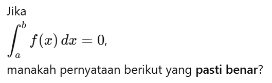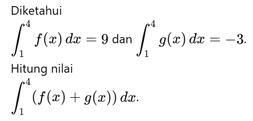 Froggy Jumps QUIZ INTEGRAL TENTUVersión en línea Selamat mengerjakan kuis Integral Tentu! Kuis ini dibuat untuk membantu kamu memahami lebih dalam tentang sifat-sifat integral tentu dan cara menghitung nilainya. Kerjakan soal-soal yang tersedia dengan teliti agar kamu dapat mengetahui sejauh mana pemahamanmu tentang materi ini. por amanda putri 1 a 12 b -12 c 7 2 a 6 b 12 c 3 3 a 18 b 90 c 15 4 a -3 b 3 c 11 5 a b c