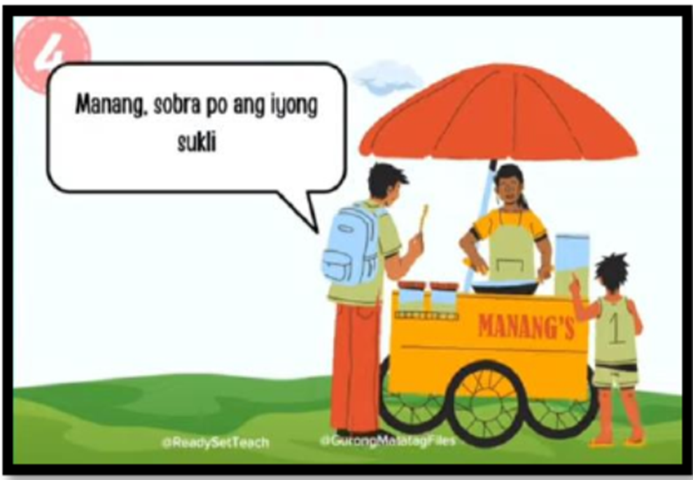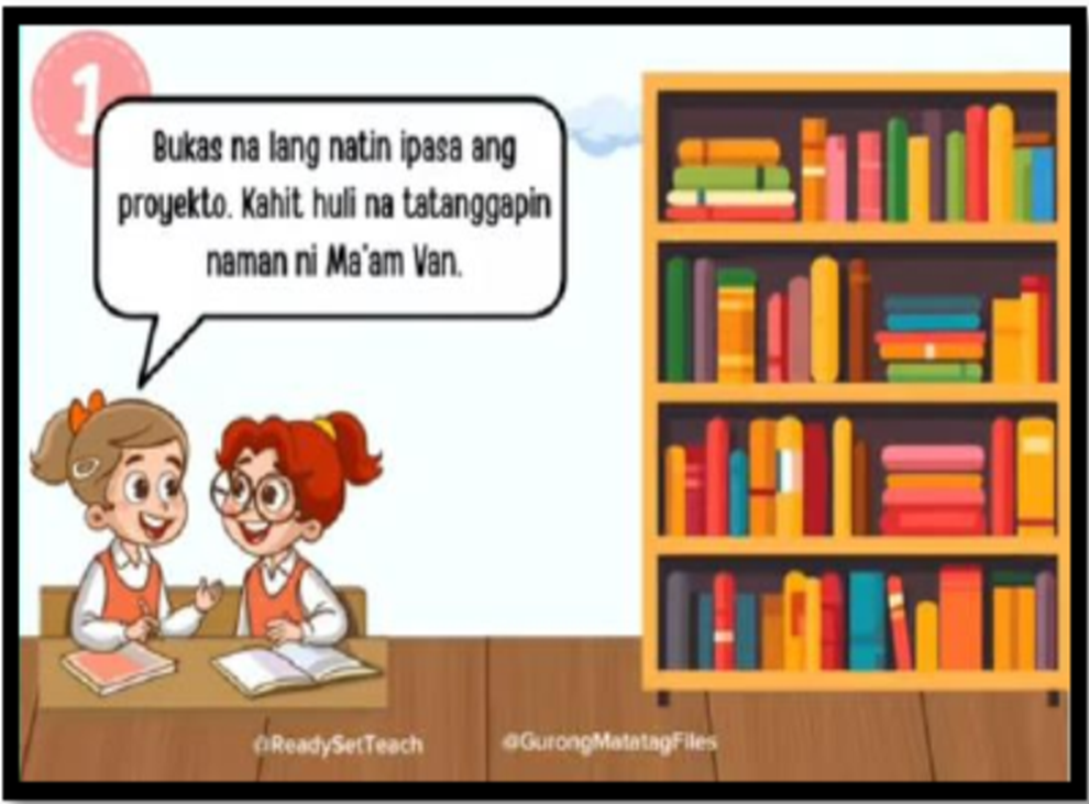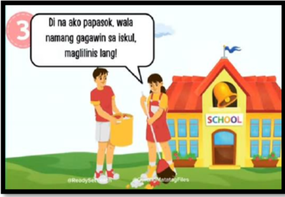 Relacionar Columnas Urbana at Feliza_Suri-AsalVersión en línea Hanapin sa Hanay B ang mabuti at di mabuting asal na ipinapakita sa mga larawan sa Hanay A. por Geleen Ivy Del Rosario 1 Lolo, sumabay na po kayo sa akin sa tawiran. 2 Manang, sobra po ang iyong sukli. 3 Bukas na lang natin ipasa ang proyekto. Kahit huli na tatanggapin nman ni Mam Van. 4 Di na ako papasok, wala namang gagawin sa paaralan, maglilinis lang Pagiging matapat Pagtulong sa mga nakatatanda Di pagpasa ng mga proyekto sa itinakdang araw. Maling, pagliban sa klase