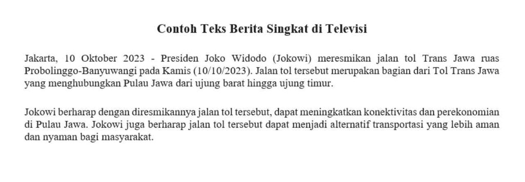 Froggy Jumps Latihan PSAS B Indo kelas 11 Smt 1 2025-2026Versión en línea Belajar bersama materi bab 1 dan 2 bahasa Indonesia kelas 11 SMK. Materinya adalah teks argumentasi, persuasi dan berita por Novia Rakhmawati 1 Apakah yang dimaksud dengan kalimat Fakta? a Kalimat yang berisi pendapat pribadi penulis tentang suatu peristiwa b Kalimat yang dapat dibuktikan kebenarannya melalui data atau informasi yang valid c Kalimat yang bertujuan memengaruhi pembaca untuk melakukan sesuatu 2 Manakah contoh dari kalimat fakta dibawah ini? a “Seharusnya pemerintah lebih tegas dalam menangani masalah sampah.” b “Indonesia memiliki lebih dari 17.000 pulau berdasarkan data BPS.” c “Menurut saya, membaca buku adalah kegiatan yang paling menyenangkan.” 3 Apa yang dimaksud dengan kalimat opini? a Kalimat yang berisi pendapat, penilaian, atau pandangan pribadi seseorang b Kalimat yang memuat data dan fakta yang telah diverifikasi c Kalimat yang menjelaskan peristiwa yang terjadi secara objektif 4 Manakah contoh kalimat opini di bawah ini? a “Gunung Merapi meletus pada tahun 2010.” b “Air membeku pada suhu 0 derajat Celsius.” c “Menurut saya, membaca buku dapat membuat seseorang lebih bahagia.” 5 Manakah kalimat persuasi yang sesuai dengan poster tersebut? a “Gunakan plastik secukupnya jika diperlukan.” b “Mari bersama kurangi penggunaan plastik sekali pakai agar lingkungan tetap bersih dan sehat!” c “Plastik sulit terurai, sehingga dapat mencemari lingkungan.” 6 Apa maksud dari poster tersebut? a Mengajak masyarakat untuk mengurangi penggunaan plastik sekali pakai demi menjaga lingkungan b Mengajak masyarakat untuk lebih sering menggunakan plastik dalam kegiatan sehari-hari c Menjelaskan cara membuat produk berbahan dasar plastik 7 Pertanyaan yang tepat dalam teks berita tersebut adalah... a Siapa yang meresmikan pembangunan pasar tradisional di Probolinggo? b Kapan Presiden Jokowi meresmikan Jalan Tol Probolinggo–Banyuwangi? c Mengapa Jalan Tol Trans Sumatra dibangun untuk mempercepat distribusi barang? 8 Manakah berikut yang tidak masuk dalam struktur teks berita ? a Kepala Berita b Tubuh Berita c Siku Berita 9 Bagian pembuka berita disebut dengan.... a Kepala Berita b Siku Berita c Leher Berita 10 Berikut adalah Ciri dan Syarat Vlog berita, kecuali... a Kemampuan komunikasi langsung dengan penonton b Pemilihan tema c Kemampuan berbicara dalam menyampaikan berita