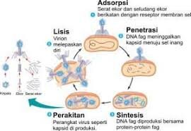 Froggy Jumps Kuis Materi Virus dan SelVersión en línea Biologi (Kelas 10 & 11) por Miftahul Jannah 1 Replikasi virus bakteriofag yang melibatkan integrasi DNA virus dengan DNA inang disebut sebagai siklus... a Litik b Lisogenik c Lisis 2 Nama virus yang memiliki bentuk kompleks (ikosahedral & batang heliks)? a HIV b Bakteriofag c TMV 3 Gambar yang menunjukkan proses replikasi virus dengan melalui siklus lisogenik adalah? a Siklus A b Siklus B c Siklus C 4 Sifat virus yang dapat menyebabkan infeksi serius atau mematikan disebut? a Virion b Prion c Virulen 5 Organel sel yang berfungsi untuk menyimpan DNA dan tempat pembuatan DNA adalah? a Mitokondria b Nukleus c Ribosom 6 Organel sel yang berfungsi sebagai tempat sintesis protein adalah? a Lisosom b Vesikula c Ribosom 7 Jenis sel yang tidak memiliki nukleus adalah? a Eukariota b Prokariota c Basidiomycota 8 Protein yang telah selesai disintesis di ribosom RE kasar, akan diangkut oleh organel ..... ke bagian ..... a Vesikula, Mitokondria b Plastida, Badan Golgi c Vesikula, Badan Golgi 9 Virus yang menyebabkan infeksi penyakit pada tanaman tembakau adalah? a HIV b TMV c H5N1 10 Virus memiliki DNA dan RNA yang terlindungi oleh bagian ..... a Kapsomer b Kapsid c Telomer 11 Bagian virus envelope yang berfungsi untuk menempel pada protein reseptor sel inang juga sebagai tanda pengenal agar membran sel inang mengizinkan masuk, disebut .... a Protein Transport b Protein Permukaan c Protein Imun 12 Gambar yang menunjukkan bentuk ikosahedral adalah ..... a Adenovirus b TMV c Rhabdovirus