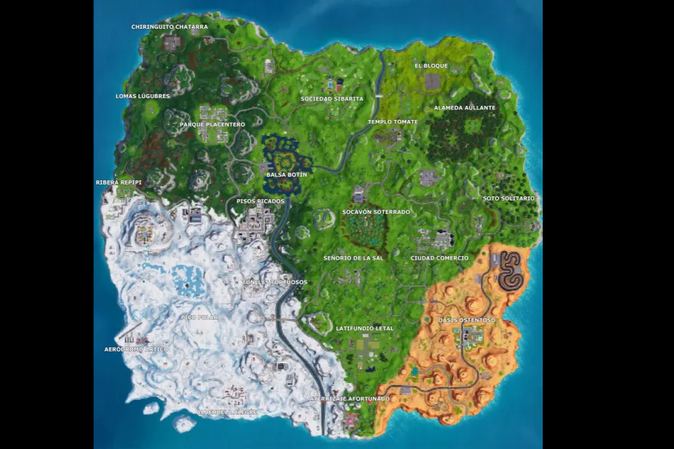 Mapa AntiguoVersión en línea Este mapa contiene una información muy valiosa para el futuro de los biomas. por Alejandro Martínez Gual 1 Tundra 2 Taiga 3 Desierto 4 Sabana 5 Pradera 6 Selva tropical Explicación 1 Zona nevada y helada, con temperaturas muy bajas y casi sin vegetación, igual que las regiones polares. 2 Bosque frío con muchos árboles de coníferas y suelo húmedo, típico de zonas frías pero sin nieve permanente. 3 Región seca, arenosa y rocosa, con colores anaranjados y muy poca vegetación, igual que los desiertos cálidos. 4 Terreno seco con mezcla de hierba y árboles dispersos, típico de climas cálidos con estaciones secas. 5 Áreas muy verdes, llanas y abiertas, con hierba abundante pero pocos árboles, como las praderas naturales. 6 Bosque muy denso y húmedo, con vegetación alta y frondosa, parecido a las selvas cálidas.