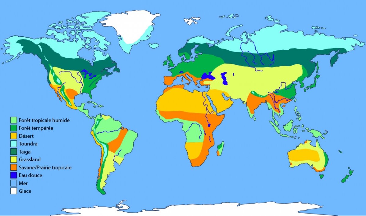 Les Biomes terrestresVersión en línea Les biomes de la terre por Tom Verbrugghe 1 Toundra 2 Taïga 3 Prairie 4 Forêt tempérée 5 Forêt tropical humide 6 Maquis 7 Savane 8 Désert