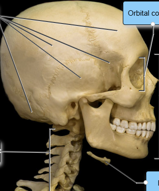 Lateral Head and NeckVersión en línea Label the head and neck bones in lateral view por Ava Schneider 1 Cervical vertebra 2 Hyoid bone 3 Facial bones 4 Cranium 5 Orbital Complex