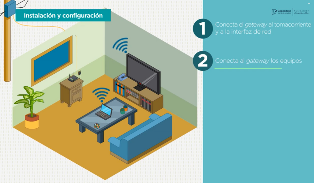 Conecta el Gateway al toma corriente y después al interfaz de red.