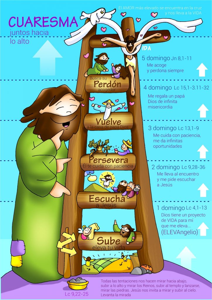 Froggy Jumps La CuaresmaVersión en línea Responde a las Cuestiones para que la Rana pueda llegar a pisar tierra por Ricardo Vigil Díaz 1 ¿Cuándo comienza la Cuaresma? a Miércoles de Ceniza b Jueves Santo c Domingo de Resurrección 2 ¿Cuántos días dura la Cuaresma? a 4 b 40 c 14 3 ¿Cuántas veces fue Jesús tentado en el desierto? a 10 b 3 c 24 4 ¿De qué color viste el sacerdote durante la Cuaresma? a Morado b Según le apetece c Verde 5 ¿Cuál es el signo que impone el sacerdote en la frente el Miércoles de Ceniza? a Dibuja un árbol b La cruz c Una nube porque estamos en las nubes 6 ¿Cuáles son las tres cosas importantes de la Cuaresma? a Ayuno,ver la tv y ser egoísta b Ayuno,Oración,Limosna c Insultos,peleas,enfados 7 ¿Qué día finaliza la Cuaresma? a Domingo de Pascua b El Domingo de Ramos c En Navidad 8 ¿Cómo se llama el acto de no comer carne los viernes de la Cuaresma o renunciar a algo que nos gusta? a Abstinencia b Dieta c No comer porque no me gusta 9 ¿Qué otras veces aparece el número 40 en la Biblia? a 40 grados de verano b 40 días Diluvio+ 40 Años desierto Moisés c 40 días que me faltan para las vacaciones de Semana Santa 10 ¿Para qué se preparan los cristianos durante la cuaresma? a Para hacer lo que les apetece b Para cambiar y ser más felices c Para estar más guapos el Domingo de Ramos.