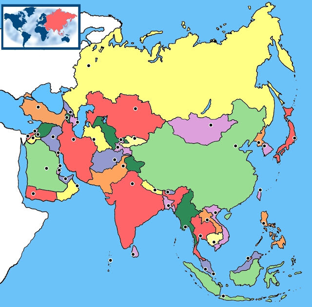 Mapa Político AsiaVersión en línea NO son todos los países por Nad 1 Afganistán 2 Arabia Saudí 3 Bangladés 4 Bután 5 Camboya 6 Corea del Norte 7 Corea del Sur 8 Emiratos Árabes Unidos 9 Filipinas 10 India 11 Indonesia 12 Irak 13 Irán 14 Israel y Palestina 15 Japón 16 Jordania 17 Kazajistán 18 Kuwait 19 Laos 20 Malasia 21 Mongolia 22 Myanmar 23 Nepal 24 Omán 25 Yemen 26 Pakistán 27 China 28 Rusia 29 Siria 30 Tailandia 31 Sri Lanka 32 Taiwán 33 Turkmenistán 34 Uzbekistán 35 Vietnam
