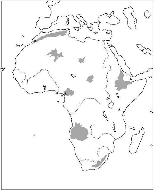 Mapa físico de África, con nivel de 1º ESO (12 años), con estos datos: Océano Atlántico, Mar Mediterráneo, Mar Rojo, Océano índico, Estrecho de Gibraltar, Canal de Suez, Estrecho Bab el Mandeb, Seychelles, Zanzíbar, Comores, Madagascar, Reunión, Santa Elena, Santo Tomé, Cabo Verde, Canarias, Madeira, Cabo Espartel, Golfo de Adén, Península de Somalia, Cabo de Buena Esperanza, Golfo de Guinea, Cabo Verde, Montes Atlas, Desierto del Sahara, Macizo de Abisinia, Pico Kilimanjaro, Desierto del Kalahari, Desierto de Namibia, Nilo, Rio Zambeze, Rio Limpopo, Río Orange, Río Congo, Río Nigel, Río Senegal, Lago Chad, Lago Volta, Lago Alberto, Lago Turkana, Lago Victoria, Lago Tanganika, Lago Malawi