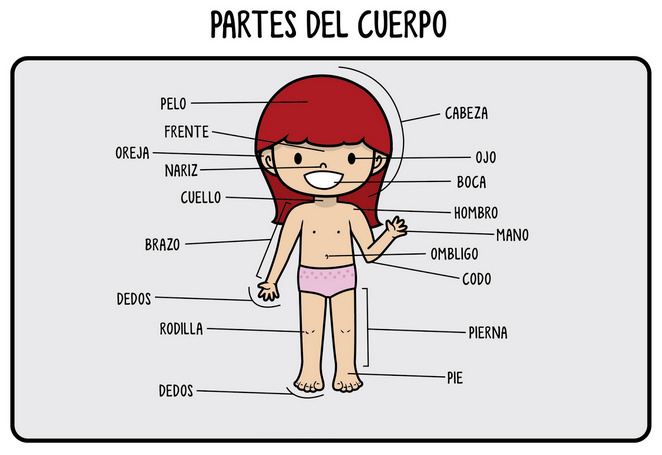 Partes del cuerpo.Versión en línea Relacionar las partes del cuerpo con su ubicación,a través de imágenes y palabras. por Monica Alejandra Leiva Rivas 1 PELO 2 CABEZA 3 FRENTE 4 OREJA 5 NARIZ 6 CUELLO 7 BRAZO 8 DEDOS 9 OJO 10 BOCA 11 HOMBRO 12 MANO 13 OMBLIGO 14 CODO 15 PIERNA 16 PIE 17 DEDOS 18 RODILLA