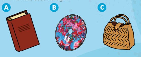 Listening in Present Perfect!Versión en línea Listen to the conversations. Choose the best answer, A, B or C, for each question. por Joel Pierre Madrid Vivanco 1 What has Jason bought? a A b B c C 2 Who has the girl been shopping with? a A b B c C 3 Who does Milly want to buy a present for? a A b B c C 4 Which shop has Tom visited? a A b B c C 5 Which shop has just opened? a A b B c C 6 Has Jason watched the DVD yet? Written answer 7 Has Mark ever been shopping with his sistert? Written answer 8 Has Milly gotten Sarah's present yet? Written answer 9 Has Tom bought some jeans? Written answer 10 Has the first speaker gotten some new trainers? Written answer