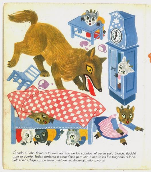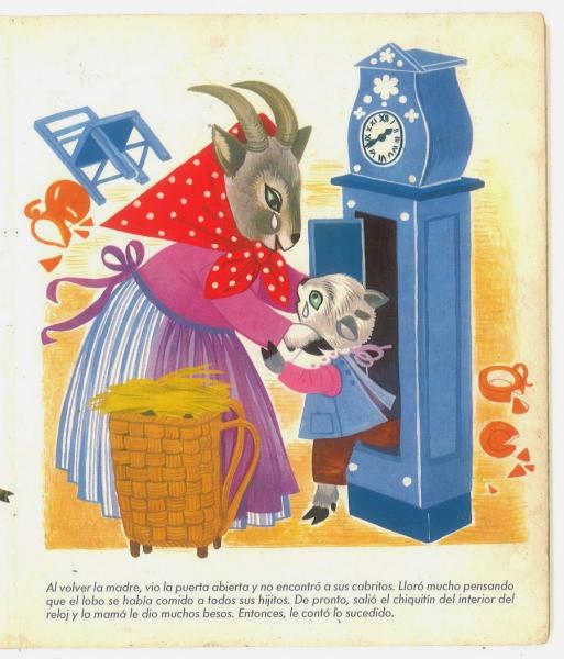 EL LOBO Y LOS SIETE CABRITOSVersión en línea El estudiante hará una lectura de forma comprensiva del texto guía Nivelemos 3 Lenguaje, página 42 a la 46: "El Lobo y los Siete cabritos", en el cual deberá dar respuesta a los enunciados seleccionando la respuesta acertada según el texto leído. por HAROLD ACOSTA MARTÍNEZ 1 ¿Cuál es el tema del cuento? a Siete cabritos castigados por desobedientes b Un lobo que se comió siete cabritos c Una cabra que se escondió en un reloj de pared d Las travesuras de los siete cabritos y el lobo 2 ¿Cuáles son los personajes principales del cuento? a El tendero b El panadero c Los siete cabritos y el lobo d La mamá cabra 3 ¿Qué le advirtió la mamá cabra a los siete cabritos? a No visitar al lobo b Tener cuidado con el lobo c No salir de la casa d No hacer desorden 4 ¿En cuál de estos ambientes se desarrolla el cuento? a En un monte b Cerca del mar c La orilla de un río d Casa cerca del bosque 5 ¿Cuáles eran las características con la que los cabritos podrían reconocer al lobo? a Ronca voz y pezuñas negras b Peludo y grande c Ronca voz y peludo d Tierna voz y pezuñas negras 6 ¿Cómo hizo el lobo para entrar a la casa de los cabritos? a El lobo tiró la puerta de la casa b El lobo engañó a los cabritos c El lobo entró por la ventana d El lobo los convenció 7 ¿Qué sucedió cuando el lobo entró a la casa de los cabritos? a Los cabritos jugaron con el lobo b Los cabritos huyeron hacia el bosque c El lobo se asustó y se escondió d Los cabritos asustados salieron a esconderse 8 El lobo se comió a: a Todos los cabritos b A un cabrito c A seis cabritos d La mamá cabra y los siete cabritos 9 ¿Cuál cabrito no fue comido por el lobo? a El cabrito mayor b El cabrito menor c El cabrito distraido d El cabrito inteligente 10 Al llegar mamá cabra a la casa y no encontrar a sus hijitos, donde encontró al cabrito menor escondido? a Debajo de la cama b En la chimenea c Detrás de la puerta d En el reloj de pared 11 Al comentarle el cabrito menor lo que había sucedido con el lobo, la mamá cabra salió desesperada en busca de sus hijos. ¿Qué hizo la mamá cabra cuando encontró al lobo? a Rajó la barriga del lobo y sacó a sus hijos b Dejó al lobo que siguiera durmiendo c Salió en busca de ayuda d Dejó escapar al lobo 12 ¿Qué pasó al final con el lobo? a El lobo se fue arrepentido b El lobo siguió durmiendo c El lobo murió ahogado en un pozo d El lobo quedó con hambre
