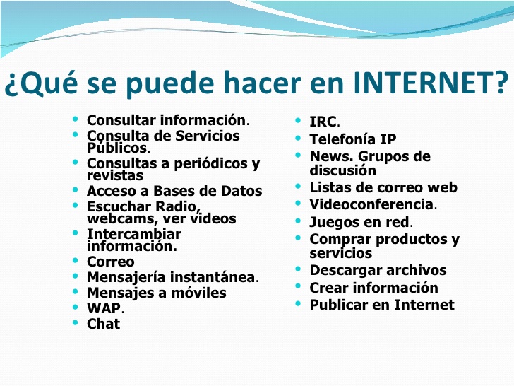 Las utilidades que tiene Internet son innumerables y crecen día a día. Nos limitaremos a describir aquéllas que consideramos básicas e interesantes para un usuario medio: