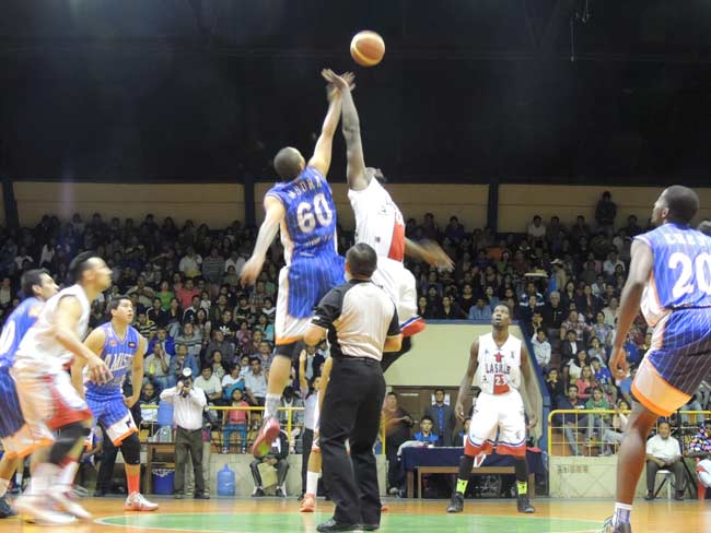 El árbitro lanza la pelota hacia arriba y los dos jugadores saltan para intentar desviarla (no pueden cogerla) hacia algún compañero de su equipo.