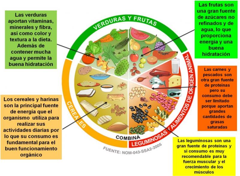El plato del buen comer facilita la identificación de los tres grupos de alimentos (verduras y frutas, cereales y tubérculos, leguminosas y proteínas de origen animal), la combinación y variación de la alimentación, la selección de menús diarios con los tres grupos de alimentos y el aporte de energía y nutrientes a través de la alimentación correcta.