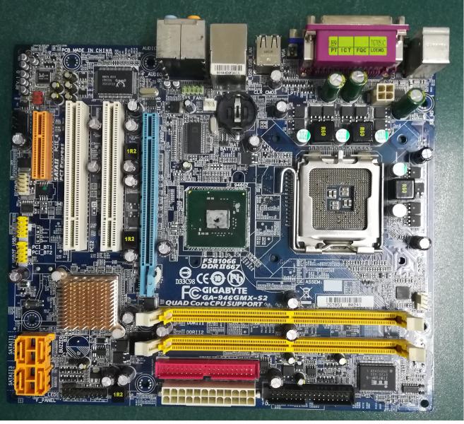 Placa Base 2 Grupo BVersión en línea Gigabyte GA-946gmx-s2 por Grupo Mme B 1 Zócalo CPU 2 Panel trasero 3 Ranura RAM DDR2 4 Controlador gráfico integrado 5 Batería CMOS 6 Conector de potencia 7 Conector IDE 8 Conector FDD 9 Ranuras de expansión PCI Express x16 10 Chipset