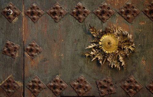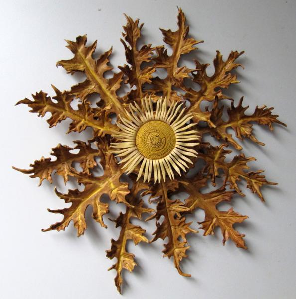 -Amalur -le dijeron- te estamos muy agradecidos porque nos has regalado la madre Luna y la madre Sol pero necesitamos aún algo más porque aunque durante el día no tenemos problemas, al llegar la noche los genios salen de sus simas y nos acosan. Nuevamente, la Tierra les dijo: -Está bien. Voy a ayudaros una vez más. Crearé para vosotros una flor tan hermosa que, al verla, los seres de la noche creerán que es el propio Sol. Y la Tierra creó la flor Eguzkilore (Flor del Sol) que hasta nuestros días defiende nuestras casas de los malos espíritus, brujos, lamias, genios de la enfermedad, la tempestad y el rayo.» Eguzkilore: Se trata en sí del símbolo que representa la flor seca del cardo silvestre “Carlina acaulis”. Símbolo tradicional que se coloca en la puerta de entrada de los caseríos del País Vasco como una representación del astro diurno y que desempeña las mismas funciones místicas atribuidas al sol. Este ahuyenta a los malos espíritus, impide la entrada a las brujas, a los genios de las enfermedades, de la tempestad, del rayo, etc. Eguzkilore es la imagen de la paz y del desarrollo.