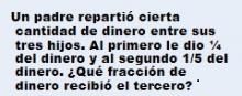 Fracciones Versión en línea Esta actividad esta destinada a reforzar tus aprendizaje adquirido por ROSA GLADYS CUBAS CARRANZA 1 El siguiente segmento se dividió en partes iguales. ¿Cuál es la fracción que corresponde al punto señalado? a 1/3 b 1/2 c 2/3 d 3/2 2 Da respuesta al siguiente situación planteada a 3 200 dólares. b 800 dólares c 2 900 dolares d 4 000 dólares 3 Seguimos a 20/11 b 11/20 c 5/20 d 20/5 4 Ahora una fácil a 13/5 b 9/13 c 5/13 d 2/13 5 ¿cuál representa 2/3? a a b b c c d d