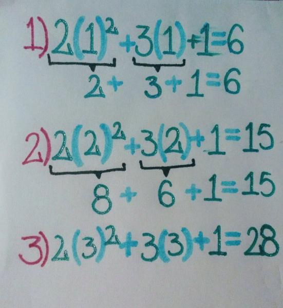 3 termino de la sucesión en lugar de la n se pone el numero 3 ya que es el termino que estoy buscando y quedaría así: