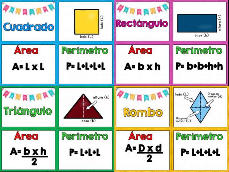 Explicación acerca de cuales son las formulas que se usan para determinar el área y el perímetro de las figuras geométricas.