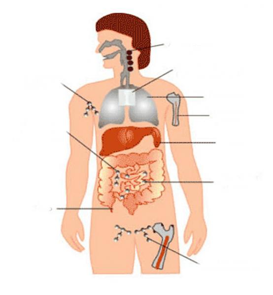 SISTEMA LINFÁTICOVersión en línea Conoceremos las partes del sistema linfático. ¡Aprende con nosotros! por Maria Mantilla 1 AMIGDALAS 2 TIMO 3 PULMONES 4 MÉDULA OSEA 5 BAZO 6 PLACAS DE PEYER 7 GANGLIOS GENITOURINARIOS 8 GANGLIO LINFÁTICOS 9 GANGLIOS LINFÁTICO MESENTERIOS 10 GANGLIOS LINFÁTICO MESENTERIOS 11 CIEGO