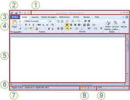interfaz de word 2010Versión en línea identificar y ubicar los elementos de la interfaz de word 2010 por ROGER MANUEL LAMADRID SÁNCHEZ 1 Barra herramientas de acceso rápido 2 Barra de título 3 Ficha Archivo 4 Cinta de Opciones 5 Área de Trabajo 6 Barras de Desplazamiento 7 Barra de Estado 8 Botones de Vista 9 Zoom