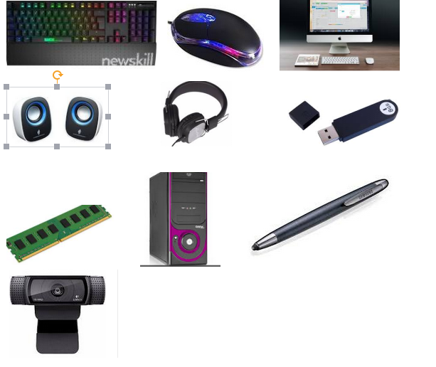 elementos de una computadoraVersión en línea 10 elementos por Kevin Monter 1 teclado 2 mause 3 pantalla de computadora 4 bocinas de computadora 5 audifonos 6 memoria USB 7 memoria ram 8 ordenador 9 lapiz optico 10 camara web