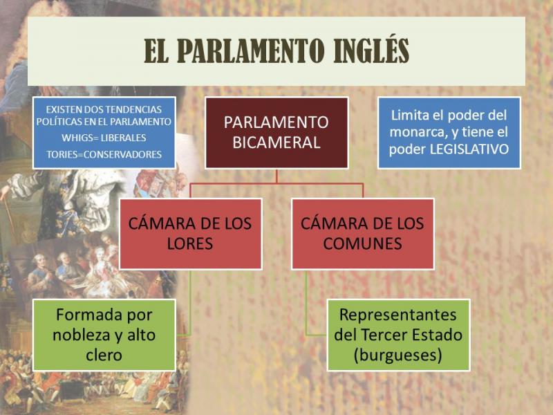 La monarquía absoluta no se dio en todos los países de Europa, en GRAN BRETAÑA se desarrolló el PARLAMENTARISMO, siendo redactada una Carta de Derechos donde se establecía que las decisiones del rey - Guillermo de Orange- quedaban supeditadas a las decisiones del Parlamento.