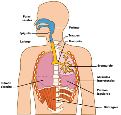 sistema respiratorio Versión en línea La respiración es un proceso involuntario y automático, en que se extrae el oxígeno del aire inspirado y se expulsan los gases de desecho con el aire espirado los órganos responsables y que forman parte del sistema respiratorio son, la nariz, faringe, laringe, tráquea, bronquios, pulmones y diafragma. por Jorge Elliott Kaleb Acuña Lorencez 1 Son dos cavidades que se encuentran en el interior de la nariz, cuya función es permitir la entrada del aire, el cual se humedece, filtra y calienta a través de unas estructuras llamadas cornetes. 2 es un tubo musculoso situado en el cuello y revestido de membrana mucosa este conecta la nariz y la boca con la tráquea y el esófago 3 Órgano en forma de lámina cartilaginosa, inserto por su base en el ángulo entrante del cartílago tiroides, que en el momento de la deglución cierra la abertura superior de la laringe. 4 Este órgano permite el paso del aire desde la nariz hacia la tráquea y de ahí a los pulmones,La emisión de sonidos está condicionada al movimiento de las cuerdas vocales. 5 Es el tubo que conecta la nariz y la boca con los bronquios y los pulmones. 6 Uno de los dos conductos tubulares en que se bifurca la tráquea y por los que se introduce el aire en los pulmones. 7 Son parte de las vías respiratorias en los pulmones. 8 son un par de sacos (derecho e izquierdo) que se encuentran en la cavidad torácica y que llevan a cabo la función de la oxigenación sanguínea. 9 mueven la caja torácica y permiten la respiración pues al contraerse los músculos flexores provocan la espiración y al contraerse los músculos extensores, la inspiración. 10 Es un músculo de forma alargada que separa la cavidad torácica de la abdominal. 11 Es una de las bolsas de aire, que esta ubicado a un costado del cuerpo.