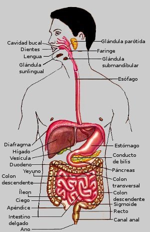 sistema digestivo Versión en línea es el conjunto de órganos (boca, faringe, esófago, estómago, intestino delgado e intestino grueso) encargados del proceso de la digestión. La digestión es el proceso de transformación de los alimentos para que puedan ser absorbidos y utilizados por las células del organismo. por Dania Guadalupe Morales Hernández 1 es la abertura corporal por la que se ingieren alimentos. Está ubicada en la cara y constituye en su mayor parte el aparato estomatognático, 2 Conducto de paredes musculosas y membranosas que comunica la boca con el esófago; en el ser humano, forma parte del tubo digestivo y contribuye a la respiración y a la fonación, pues comunica con las fosas nasales, las trompas de Eustaquio y la laringe. 3 Conducto muscular del aparato digestivo que comunica la faringe con el estómago 4 Ensanchamiento del tubo digestivo del hombre y otros animales situado entre el esófago y el intestino, en cuyas paredes están las glándulas que segregan los jugos gástricos que intervienen en la digestión. 5 Parte del intestino delgado que está comprendida entre el final del estómago y el yeyuno. 6 es una de las partes del intestino delgado, entre el duodeno y el íleon. Su función es realizar la absorción de las sustancias del quimo alimenticio. 7 es la absorción de líquidos principalmente agua y electrolitos, también absorbe Vitamina B12. 8 se encuentra localizado en la región abdominal, específicamente a nivel del hipocondrio, flanco y fosa lumbar izquierda, junto al borde lateral del riñón izquierdo. 9 es el segmento más grande y móvil del intestino grueso, pasa por debajo de la convexidad desde el hipocondrio derecho, cruzando el abdomen hasta más allá del epigastrio, al hipocondrio contra lateral. 10 es la continuación del aparato llamado ciego, que por lo general tiene un calibre menor que este último. 11 El quimo que se crea en el estómago, formado por el bolo alimenticio mezclado con el ácido clorhídrico, pepsinógeno y otras sustancias a partir de movimientos peristálticos, se mezcla a su vez con las secreciones biliar y pancreática 12 es el último tramo del tubo digestivo, situado inmediatamente después del colon sigmoide. 13 es el extremo final del tubo digestivo, donde se encuentra el esfínter que regula el proceso de la defecación.