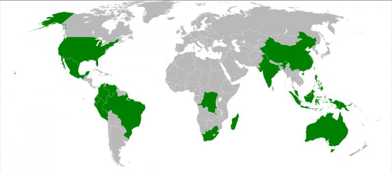 Países Megadiversos Versión en línea Los países megadiversos son un grupo de países que albergan el mayor índice de biodiversidad de la Tierra. El Centro de Monitoreo de la Conservación del Ambiente, un organismo del Programa de las Naciones Unidas para el Medio Ambiente, ha identificado 17 países megadiversos por Osleydi Felix 1 Alaska 2 Estados Unidos de América 3 México 4 Venezuela 5 Colombia 6 Ecuador 7 Peru 8 Brasil 9 Madagascar 10 Sudafrica 11 República Democrática del Congo 12 India 13 China 14 Malasia 15 Filipinas 16 Indonesia 17 Papúa Nueva Guinea 18 Australia