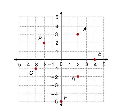 Lo que debo saberVersión en línea En esta actividad encontrarás un test con conocimientos del plano cartesiano y relaciones directas e inversas por monica castaño 1 El plano cartesiano tiene dos ejes. El eje horizontal corresponde a a Eje Y b Eje X c Eje X y Y d Eje vertical y horizontal 2 El plano cartesiano se divide en cuatro cuadrantes. Se deben enumerar a En sentido contrario de las manecillas del reloj b En sentido de las manecillas del reloj c Como se quiera enumerar d Los de arriba son II y III, los de abajo son I y IV 3 El punto E corresponde a a (0,4) b (0,0) c (4,0) d (4,4) 4 Las coordenadas del punto C son a (-3,1) b (1,3) c (-1,-3) d (-3,-1) 5 El punto B está en el cuadrante a I b II c III d IV 6 La gráfica muestra dos magnitudes que están relacionadas en forma a Directa b Inversa c Constante d Variable 7 En la gráfica la constante de proporcionalidad es a 10 b 1 c 5 d 2 8 la gráfica muestra una relación de porporcionalidad a Directa b Inversa c Constante d Variable 9 La constante de proporcionalidad es a 9 b 3 c 1 d 27 10 En la gráfica se muestra que la función es a Decreciente b Creciente c Constante d Variable