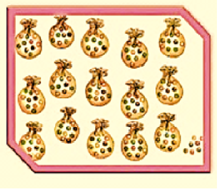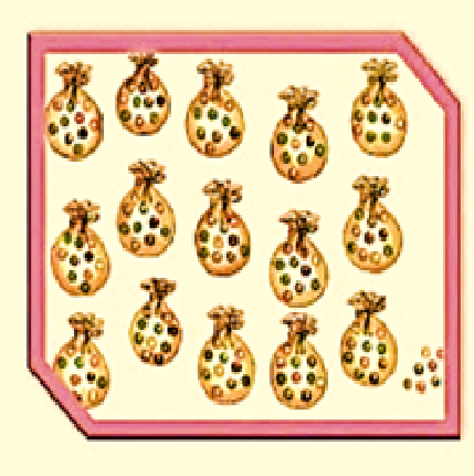 ¿ Cuál es la cantidad total de cristales que hay en todas las bolsas de la imagen?