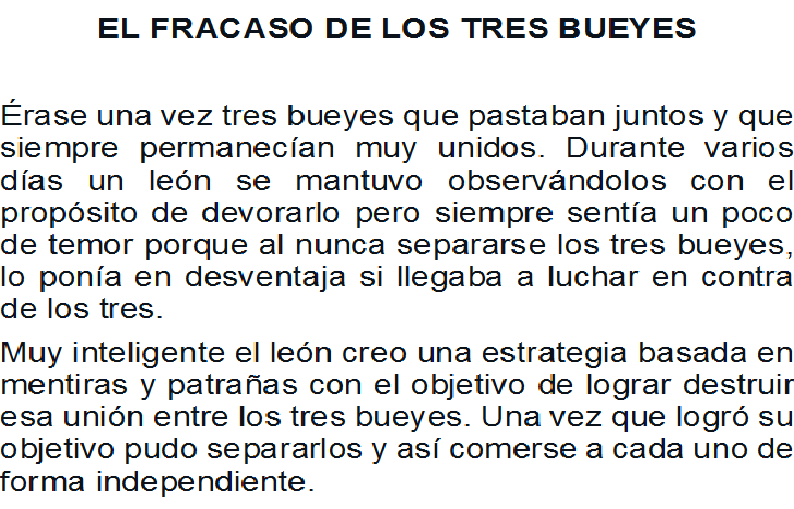 El fracaso de los tres bueyes nos deja una enseñanza o moraleja que es: