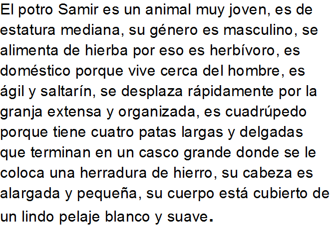 El texto del potro Samir termina con un signo de puntuación que se llama:
