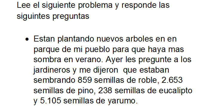 El alcalde del pueblo le dice a los jardineros que son muchas semillas de arboles, que le quiten la semilla de yarumo. ¿ Cuántas semillas quedan ahora en el parque sembradas?