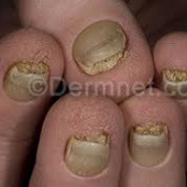 Relacionar Columnas lesiones en uñas 1Versión en línea Modificaciones de Configuración: Relacionar el nombre con la imagen por Larisa Montesdeoca 1 Macroniquia: lámina ungueal más ancha y larga que lo normal, con lecho y matriz similarmente afectados 2 Onicogrifosis: engrosamiento, elongación e hipercurvatura de la uña 3 Onicoatrofia: desarrollo defectuoso de la uña, fina y pequeña 4 Coiloniquia: uña cóncava, “uña en cuchara” 5 Braquioniquia: el ancho de la uña es más grade que el largo 6 Doliconiquia: el eje longitudinal es mayor que lo habitual 7 Microniquia: Uñas pequeñas 8 Anoniquia: ausencia de uña 9 Paquioniquia: engrosamiento de la lámina ungueal más hiperplasia del lecho 10 Uñas hipocráticas: o en “vidrio de reloj”, hay incremento de la convexidad, diámetro longitudinal y transversal y del ángulo de Lovibond 11 Onicocausis: engrosamiento de la uña sin deformación