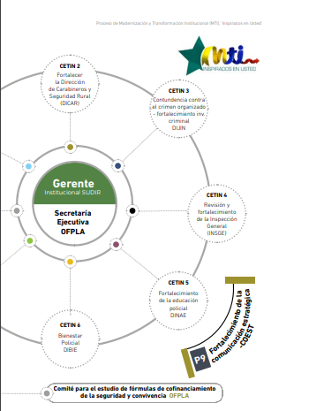Estructura organizacional Se busca realizar los ajustes para una nueva estructura de la Policía Nacional que permita optimizar capacidades, mejorar la articulación y tener una mayor alineación entre la estrategia, los procesos y los recursos. En efecto, se estudia crear la Jefatura Nacional del Servicio de Policía, con el propósito de fortalecer la articulación de las diferentes direcciones y unidades de la Policía para un mejor servicio al ciudadano en las calles, potenciando la importante tarea de vigilancia urbana y rural, ampliando el enfoque en la prevención, la participación ciudadana y la lucha integral y contundente contra el crimen desde la investigación criminal y la inteligencia policial.