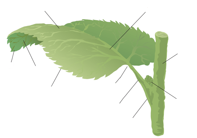 La hojaVersión en línea Partes de la hoja por Sergio Zapata 1 Limbo 2 Ápice 3 Haz 4 Nervio principal 5 Envés 6 Borde 7 Base 8 Peciolo 9 Vaina 10 Tallo 11 Yema axilar