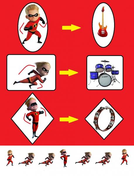 Preparemos la fiesta Versión en línea Reconocimiento de patrones por DIANA FERNANDA CASTRILLON BRAND 1 La mamá de Dash ha repartido una cantidad diferente de invitaciones en los últimos cuatro años. ¿Cuántas personas invita de más cada año? Respuesta escrita 2 ¿Cuántas invitaciones repartira para este cumpleaños? Respuesta escrita 3 La decoración de la entrada tiene globos organizados según la imagen. Si desearamos agregar otro globo al lado derecho ¿de qué color sería este? Respuesta escrita 4 Dash esta preparando unos movimientos para bailar en su fiesta. Para cada instrumento realizara un paso según como se indica en la imagen ¿Cuál fue el orden de sus movimientos de acuerdo con el sonido? a b c d 5 Si Dash realizó los movimientos de la imagen ¿Cuál fue la secuencia de sonidos que escuchó? a b c 6 Al continuar la secuencia con tres pasos más ¿Qué instrumentos se escucharán? (escribe los tres sin dejar espacio) Respuesta escrita 7 Si continuamos con la secuencia de decoración ¿Cuántos adornos deben haber en la siguiente columna en blanco? Respuesta escrita Explicación 1 Muy bien 2 Excelente 3 Muy bien 4 Excelente 5 Muy bien 6 ¡Genial! 7 Muy bien