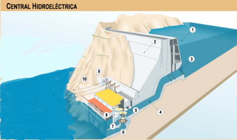 central hidroelectricaVersión en línea En una central hidroeléctrica se utiliza energía hidráulica para la generación de energía eléctrica. Son el resultado actual de la evolución de los antiguos molinos que aprovechaban la corriente de los ríos para generar energía por laura giraldo 1 embalse 2 presa 3 rejas filtradoras 4 tuberia forzada 5 turbina-alternador 6 turbina hidraulica 7 eje 8 generador electrico 9 transformadores 10 lineas de transporte de energia electrica