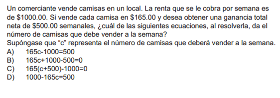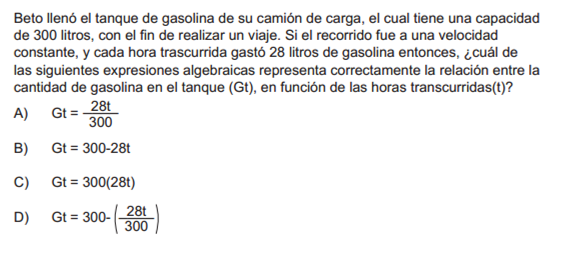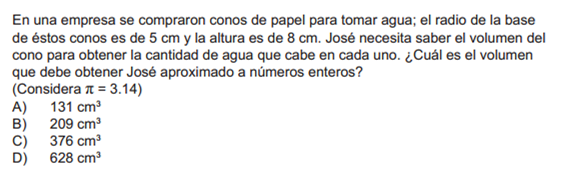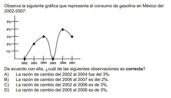 REPASO MATEMÁTICAS SEC ENLACEVersión en línea Contiene reactivos de tipo Prueba de ENLACE, para practicar tus conocimientos y habilidades de Educación Secundaria. por Adriana Emma Bezanilla Montemayor 1 Pregunta 1.- a A b B c C d D 2 Pregunta 2.- a A b B c C d D 3 Pregunta 3.- a A b B c C d D 4 Pregunta 4.- a A b B c C d D 5 Pregunta 5.- a A b B c C d D 6 Pregunta 6.- a A b B c C d D 7 Pregunta 7.- a A b B c C d D 8 Pregunta 8.- a A b B c C d D 9 Pregunta 9.- a A b B c C d D 10 Pregunta 10.- ¿En qué minuto toma la primera curva? a A) 0 min. b B) 3 min. c C) 5.5 min. d D) 7 min. Explicación 1 La respuesta correcta es la: C 2 La respuesta correcta es la: D 3 La respuesta correcta es la: A 4 La respuesta correcta es la: B 5 La respuesta correcta es la: B 6 La respuesta correcta es la: D 7 La respuesta correcta es la: B 8 La respuesta correcta es la: B 9 La respuesta correcta es la: A 10 La respuesta correcta es la: B