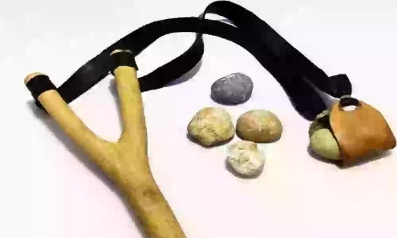 Al estirar un elástico haces trabajo sobre él, el cual tiene entonces energía potencial.   Luego se puede transformar por ejemplo, en energía cinética, como el caso de una honda.  Cuando sueltas la piedra, su energía cinética es igual a su energía potencial.   La piedra cede esta energía a su blanco, que puede ser un tarro.      La energía se transforma de una forma a otra y se transforma sin pérdida ni ganancia neta.