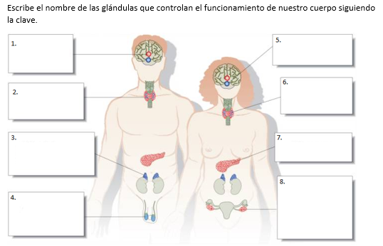Sistema hormonal o endocrinoVersión en línea Ubicación de las glándulas por Cristian López 1 Hipófisis 2 Epífisis o pineal 3 Tiroides 4 Paratiroides 5 Timo 6 Páncreas endocrino 7 Suprarrenales 8 Testículos 9 Ovarios
