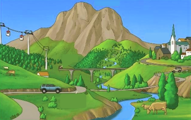 ¿Sabes dónde está?Versión en línea Identifica cada elemento. por Lebsi Colmenero 1 Montaña 2 Árbol 3 Coche 4 Río 5 Hierba 6 Carretera 7 Pueblo 8 Vaca 9 Cielo 10 Puente 11 Túnel