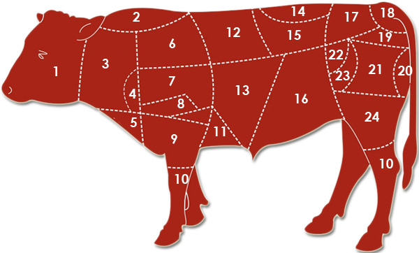 TEP DESPIECE DEL VACUNOVersión en línea Selecciona cada una de sus partes por Cristina Robles lopez 1 CABEZA 2 MORRILLO 3 PESCUEZO 4 PEZ 5 PECHO 6 AGUJA 7 ESPALDILLA 8 LLANA 9 BRAZUELO 10 JARRETE 11 ALETA 12 LOMO ALTO 13 FALDA COSTILLAR 14 SOLOMILLO 15 LOMO BAJO 16 FALDA 17 CADERA 18 RABO 19 TAPILLA 20 REDONDO 21 CONTRA 22 BABILLA 23 CADERA CON RABILLO 24 CULATA DE CONTRA