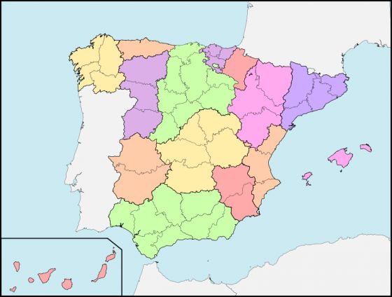 Mapa Javier de BurgosVersión en línea División provincial por Emilio Fernandez Calatrava 1 Galicia 2 Asturias 3 País Vasco 4 Navarra 5 Aragón 6 Cataluña 7 Valencia 8 Murcia 9 Andalucía 10 Extremadura 11 Castilla la Nueva 12 Castilla la Vieja 13 León 14 Islas Canarias 15 Islas Baleares